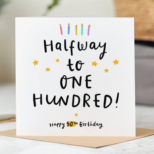Funny 50th Birthday Card – “Halfway to 100” Humour Card