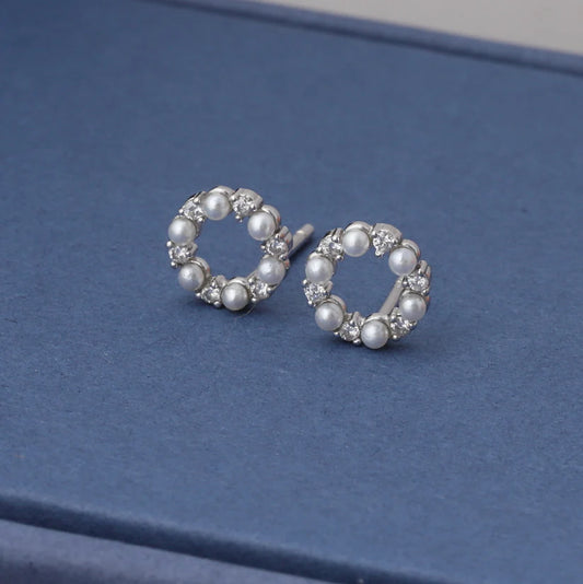 Attic Creations - LITTLE NOTE Mini pearls in circle earrings SILVER