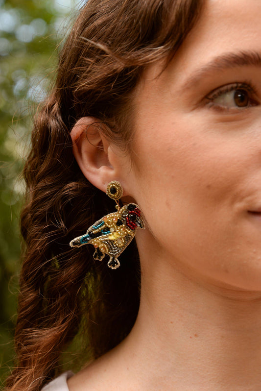 BEADED GOLDFINCH SMALL BIRD DROP EARRINGS