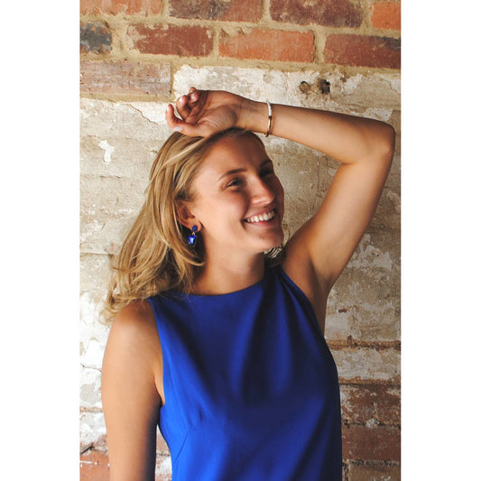 Oval Twin Gem Post Earring in Azure Blue & Pink