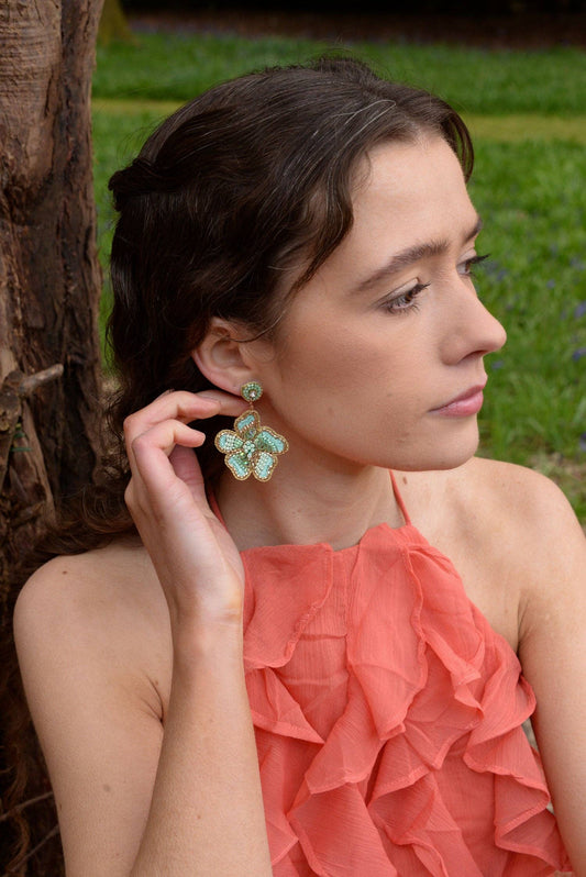 Beaded Glass Drop Circular Blue Earrings - 2111714
