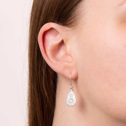 FLORA LEAF DANGLE EARRINGS: SILVER