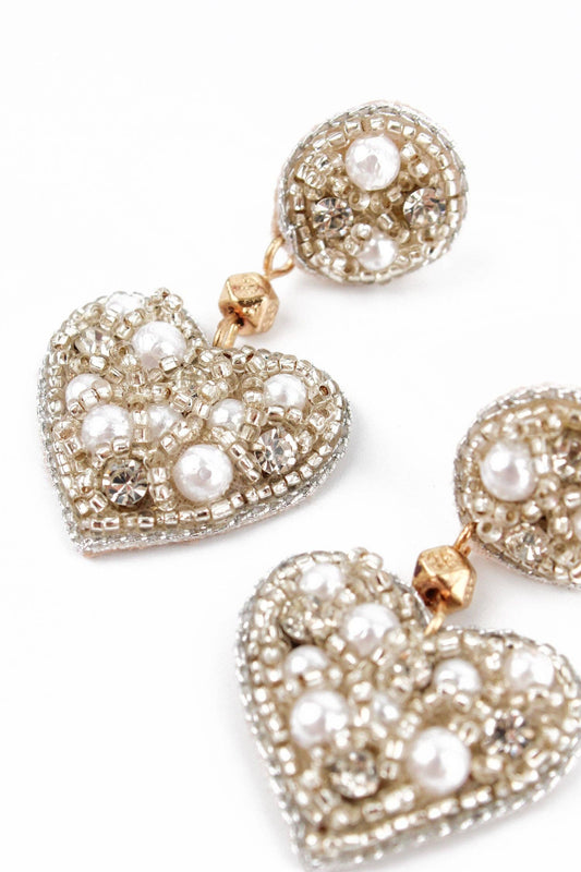 SILVER AND PEARL SMALL HEART DROP EARRINGS