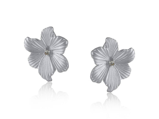 Boxed Sterling Silver Flower CZ Stud Earrings