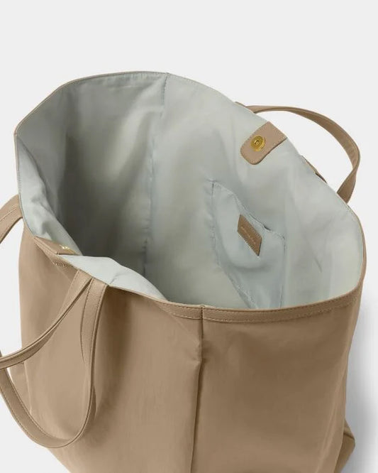 Nylon-Luxe Oversized Tote Bag - Taupe