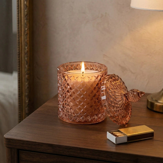 Round Embossed Candle Jar Lidded - Jhangye