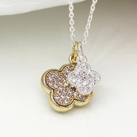 Faux gold and silver plated double quatrefoil necklace with crystals