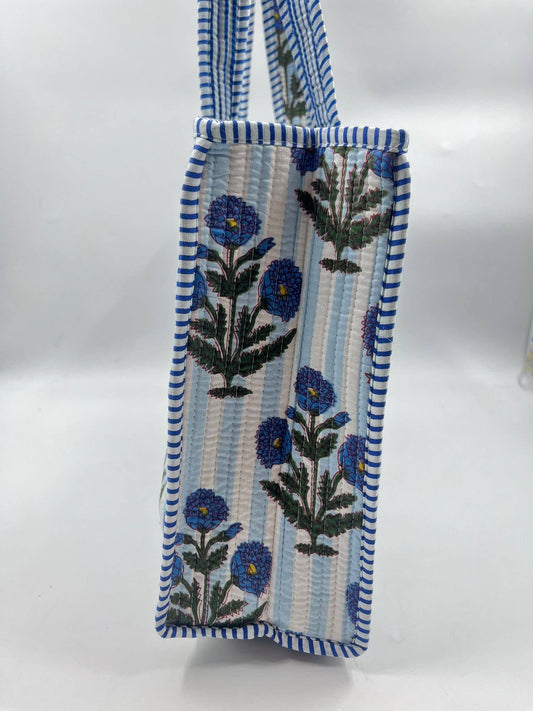 100% Cotton Kantha Quilted Boho Floral Reversible Tote(Small