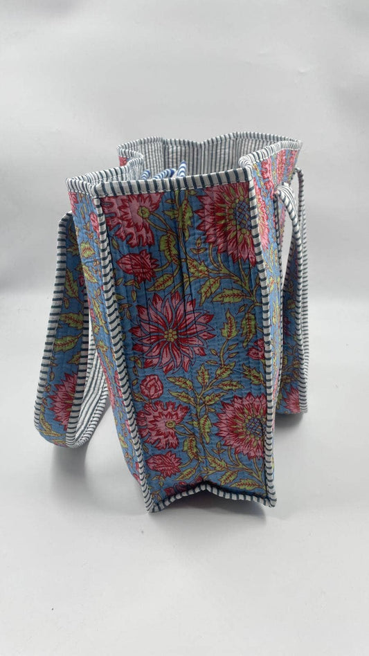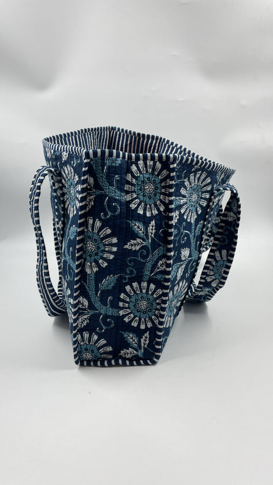 100% Cotton Kantha Quilted Boho Reversible (Small) Tote Bag