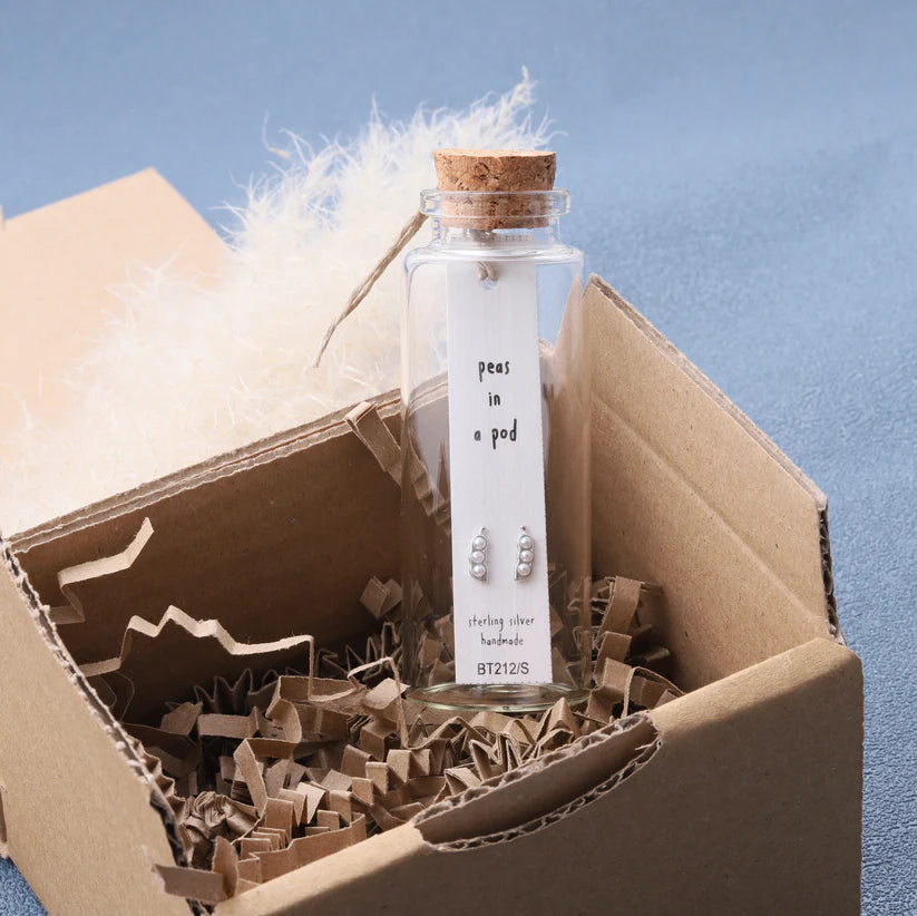 Attic Creations -'Peas in a pod' Earrings In A Message Bottle Silver