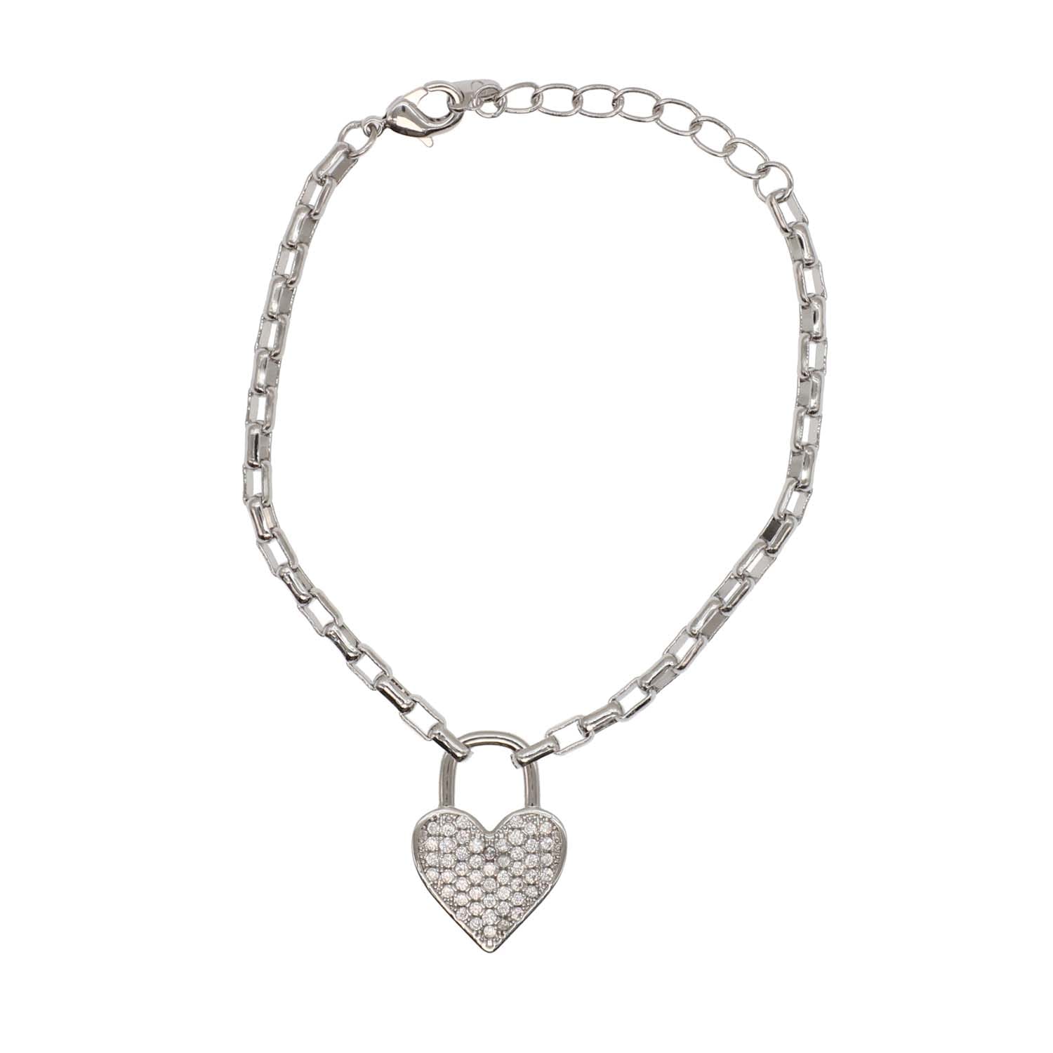 Make a bold yet romantic statement with this box chain bracelet, featuring a padlock heart pendant adorned with a sparkling CzADech crystal. Available in 14K gold or silver plating, perfect for layering or wearing solo.