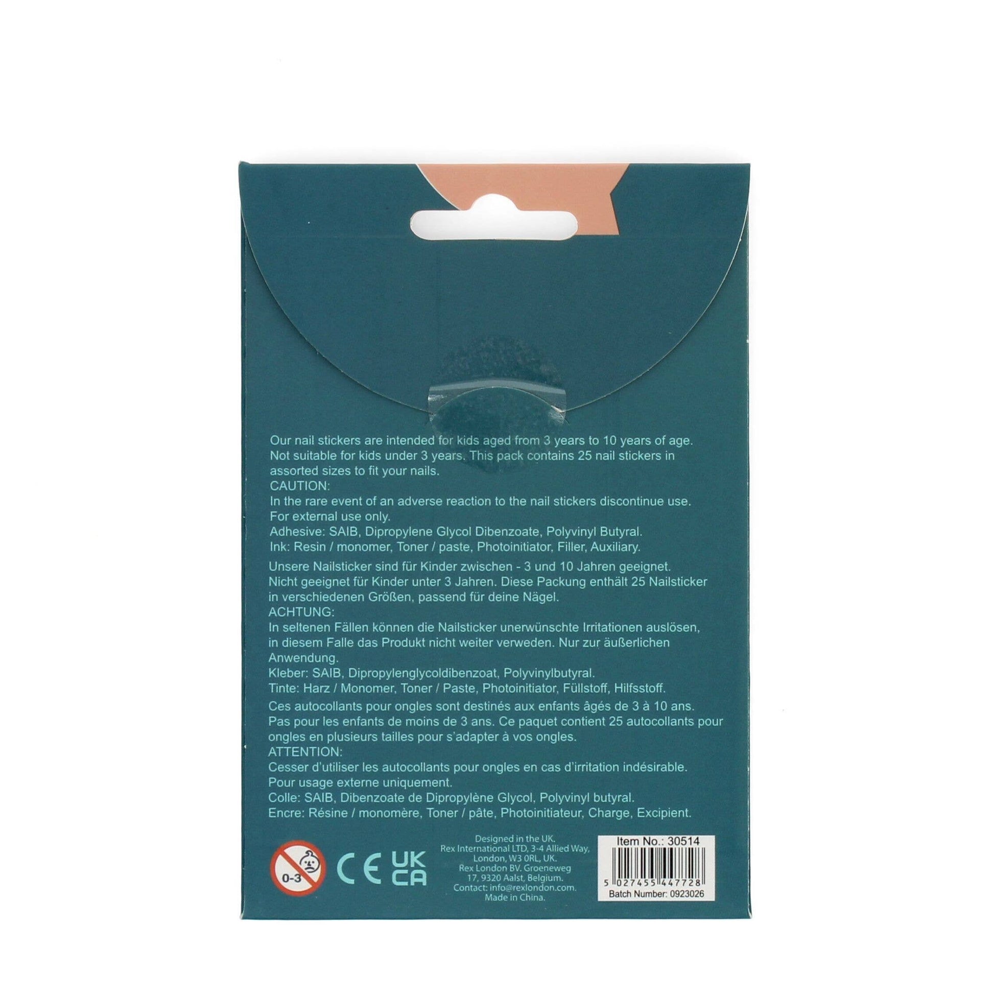 • Includes five sets of stickers of differing sizes to fit each of the average child's fingernails on one hand.