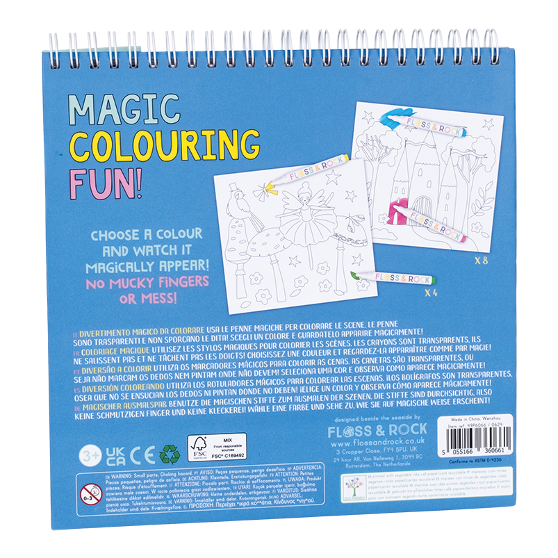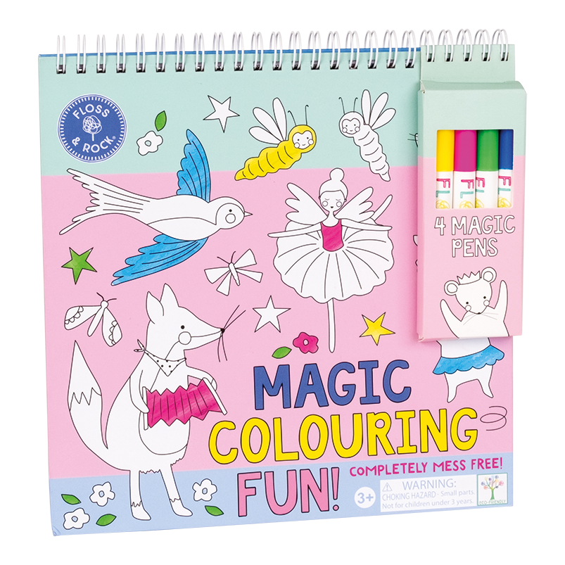 Say goodbye to mucky fingers and mess… Our magic colouring-in pens have invisible ink which only appears on our super fun pages! Choose a colour and watch it magically emerge on the page. Each spiral bound pad contains 4 magic pens and 8 colouring pages, this Enchanted design has ballet dancers, rabbits, mice, birds and more…