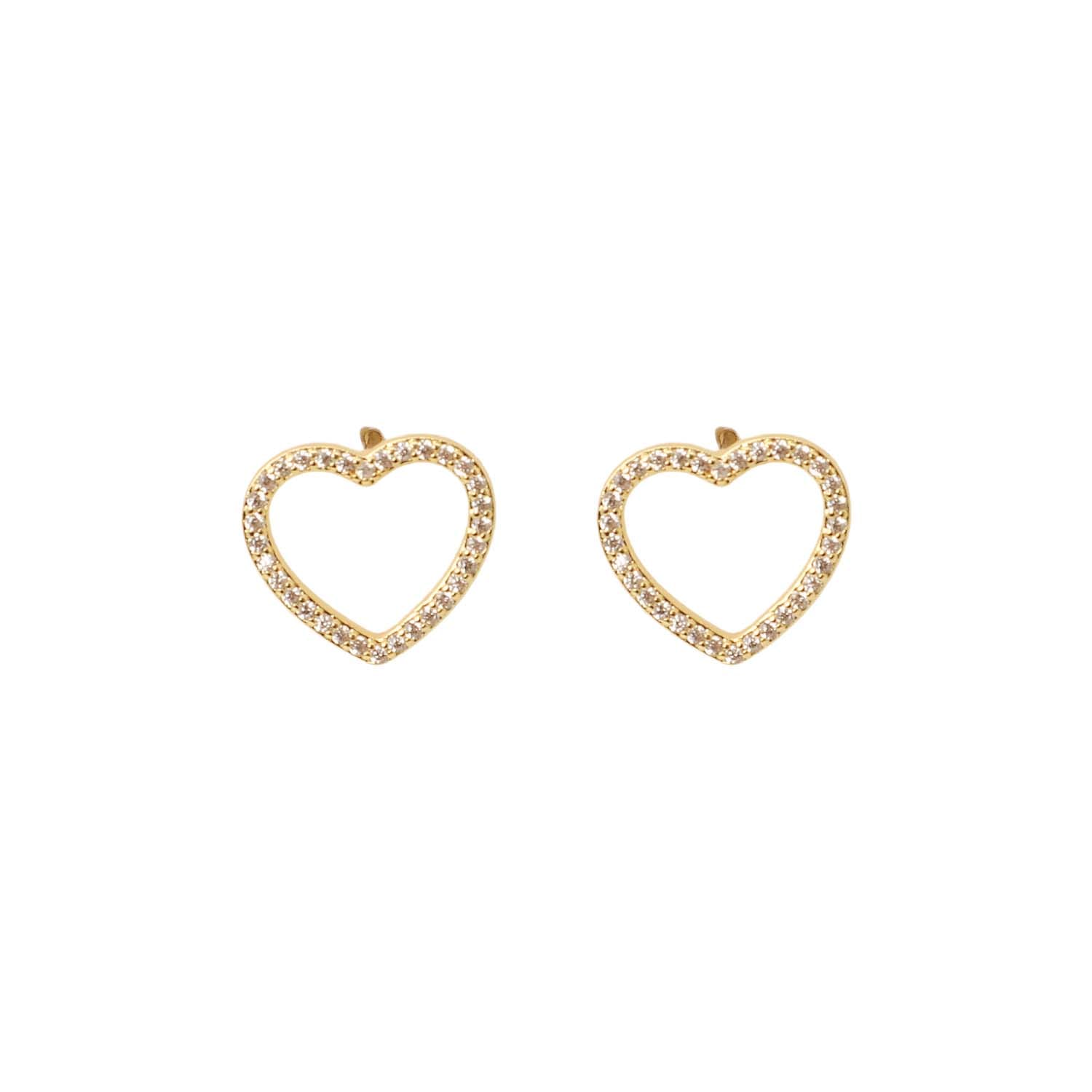 Shine bright with this elegant open heart stud earring, accented with sparkling Czech crystal detail. Available in 14K gold or silver plating..