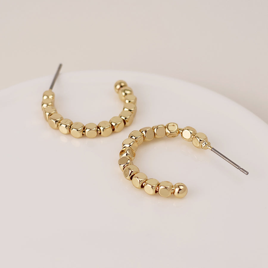 Faux gold plated c-post hoop earrings with mini cube beads.
