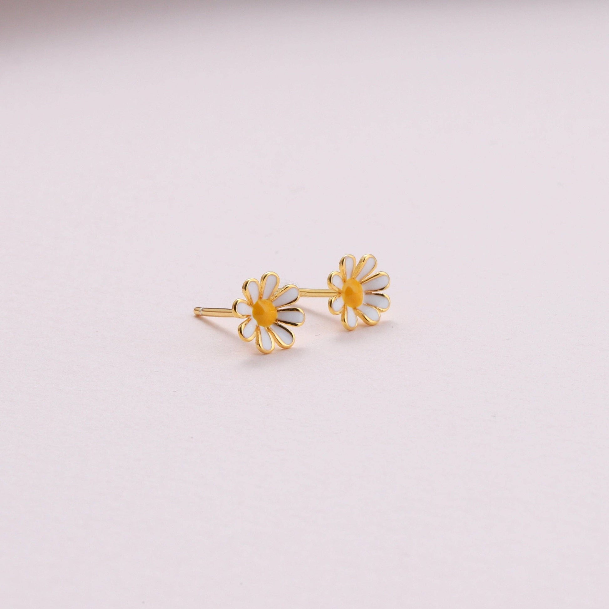 TT51018 No rain no flowers enamel daisy earrings: Silver
