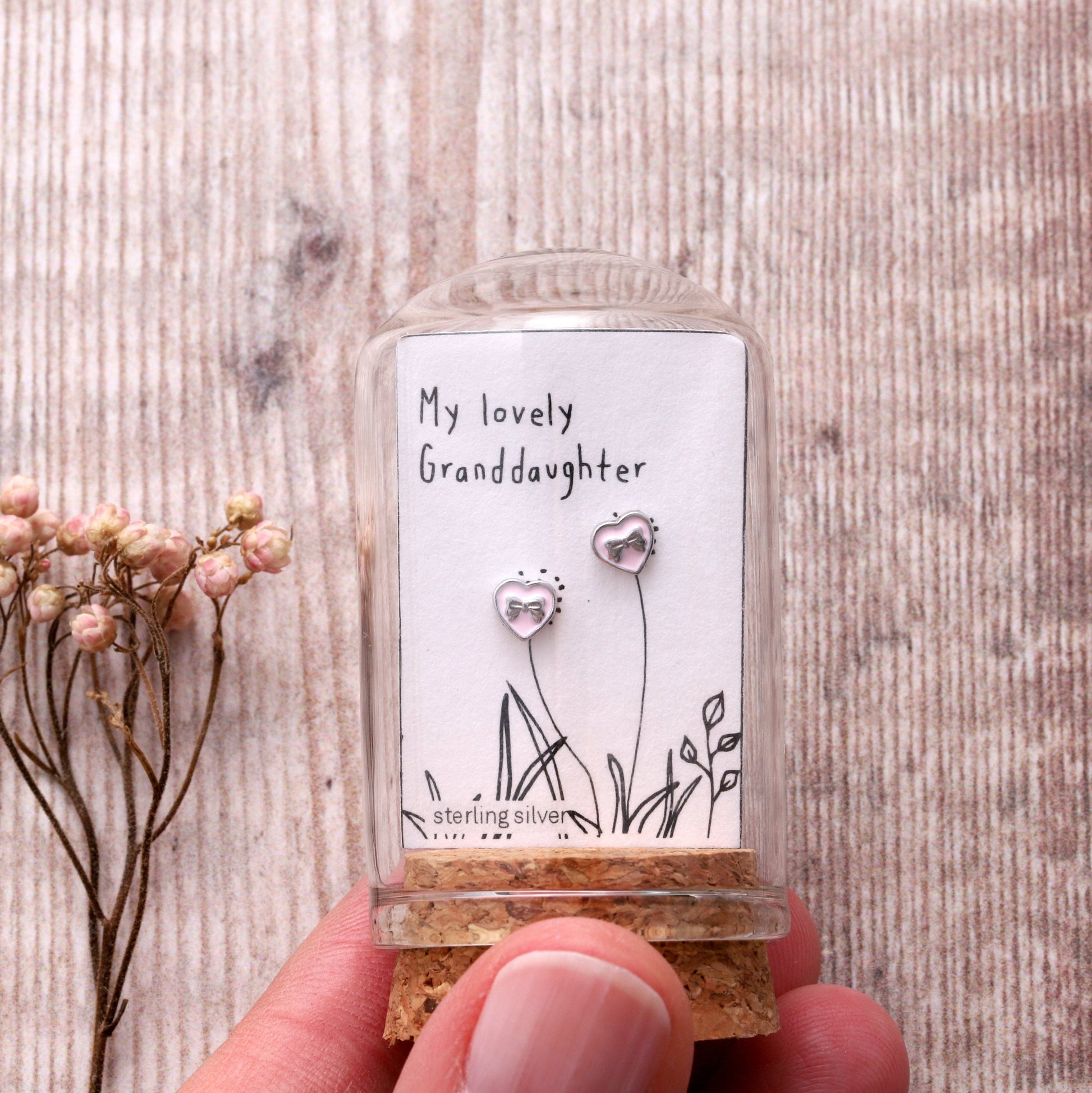 TT51122 MY LOVELY GRANDAUGHTER pink heart bow earrings