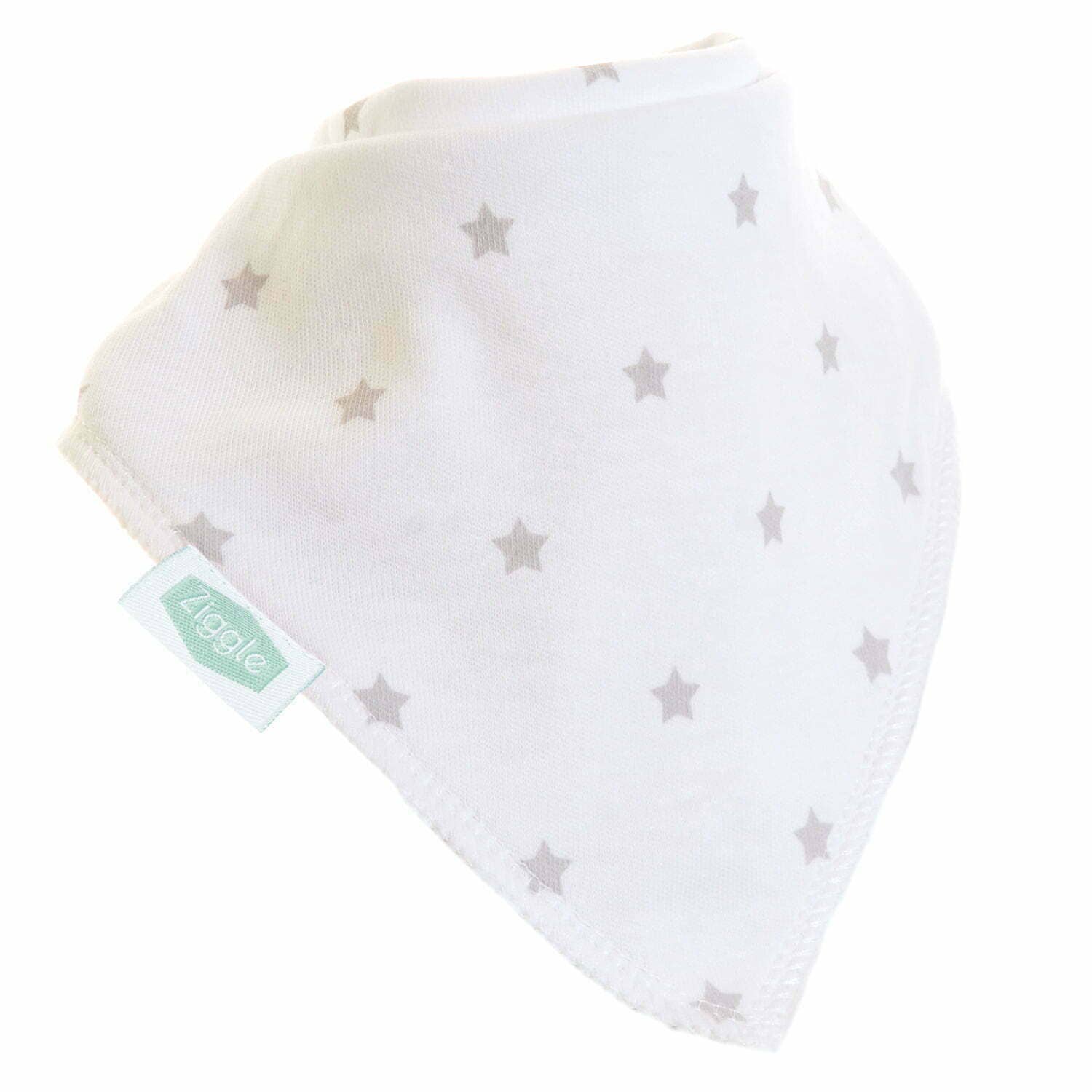 Our white with grey stars dribble bib is perfect for little dribblers and teething tots!